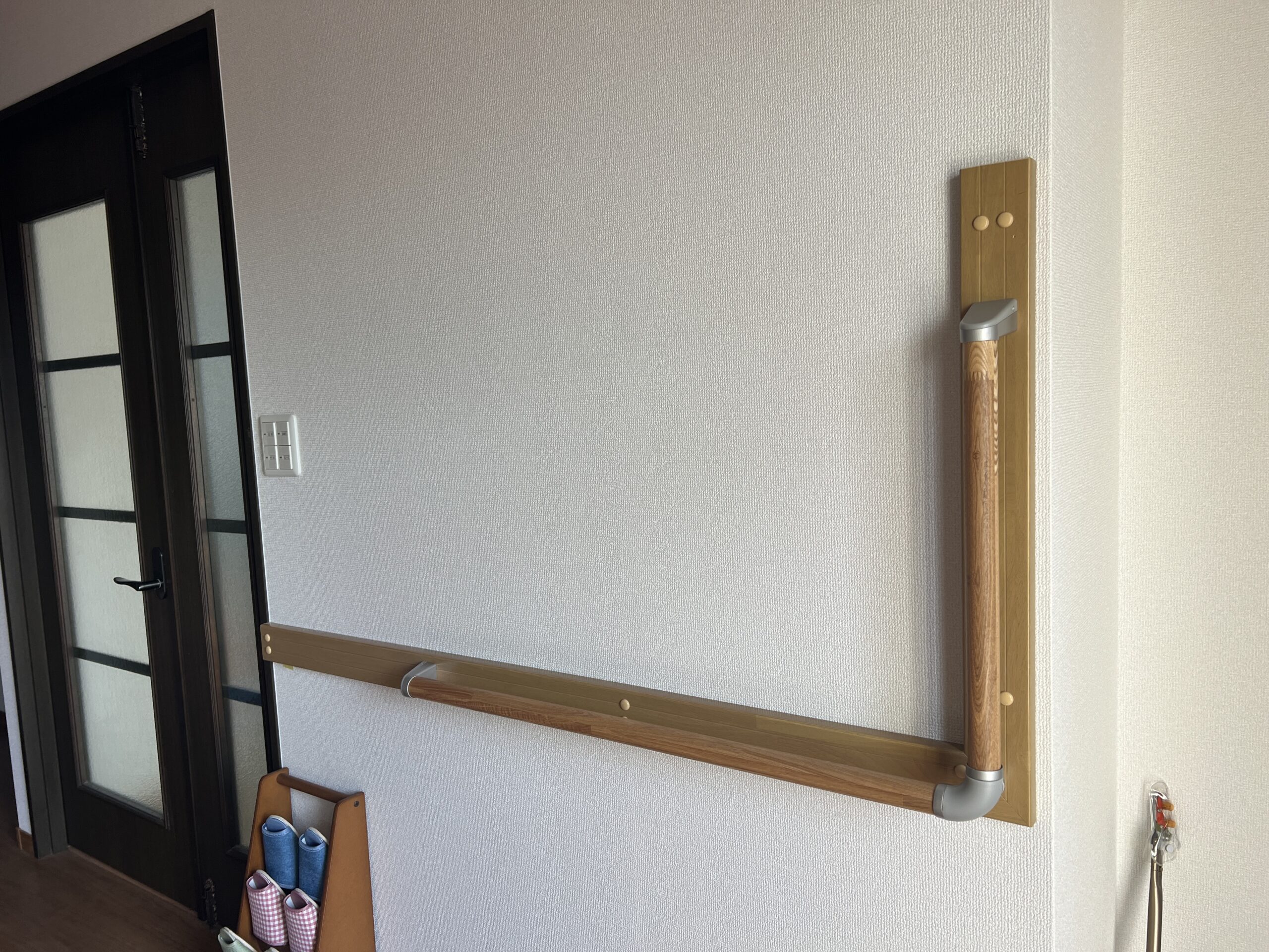 以前リフォームしたお客様から玄関に手すりがほしいとのことで大工さんで取付しました。
